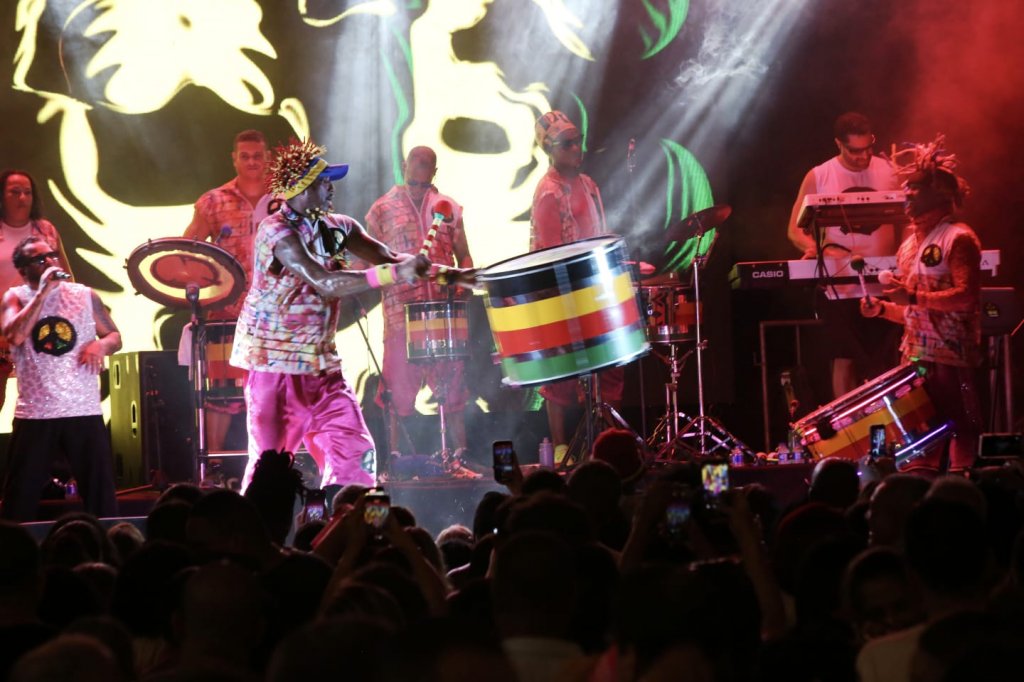 O ponto alto da noite ficou por conta do Olodum. No palco, sucessos como “Várias Queixas”, “Vem Meu Amor” e “Faraó Divindade do Egito”. Foi um verdadeiro espetáculo de cores, ritmo e identidade cultural. A galera acompanhou em coro, dançou e relembrou músicas que marcaram gerações, reforçando a conexão da banda com a história e a cultura da Bahia.